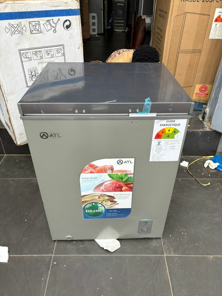 Congélateur ATL gris, idéal pour stocker vos aliments. Économe en énergie et performant, il est parfait pour les besoins de conservation au quotidien.