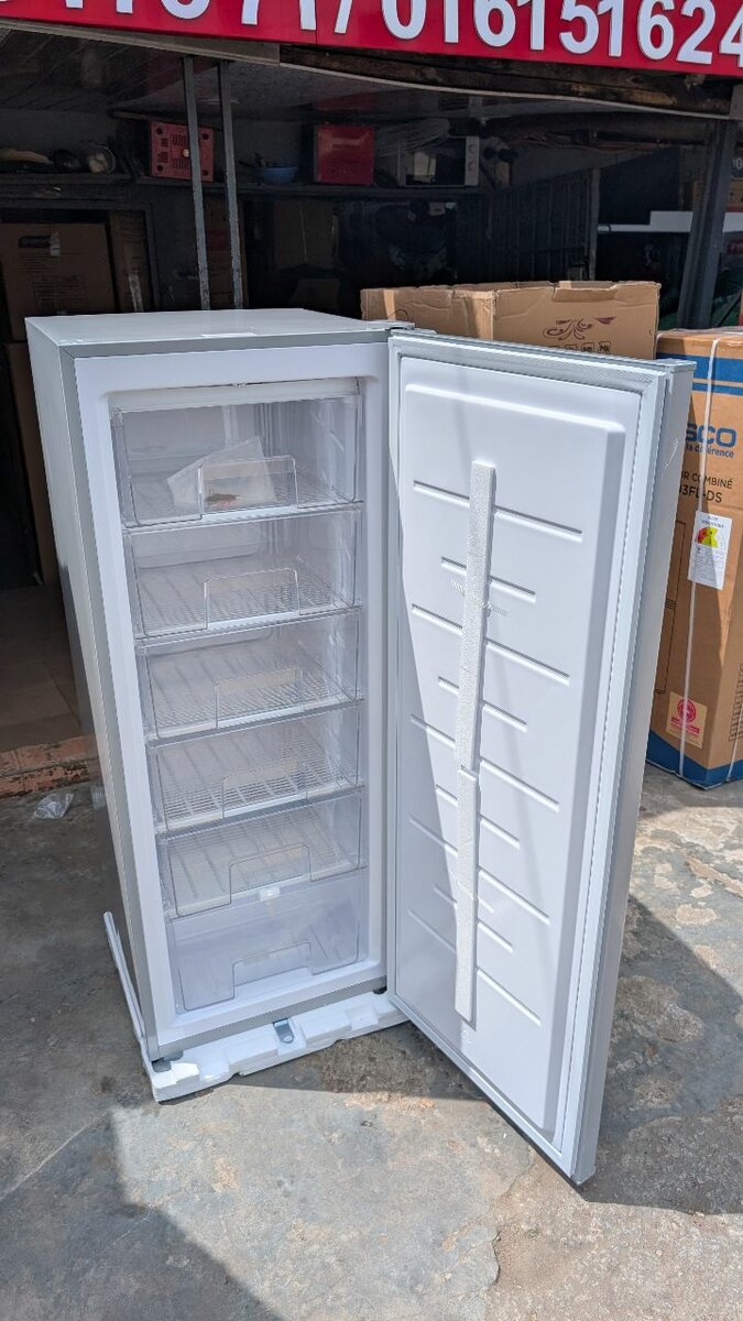 Optez pour ce congélateur vertical moderne et spacieux, idéal pour conserver vos aliments de manière organisée. Grâce à ses grandes capacités et à ses étagères bien conçues, il s'adapte parfaitement aux besoins de votre famille. Parfait pour une utilisation à la maison ou dans des environnements commerciaux. Sa conception élégante et sa facilité d'utilisation en font un choix idéal pour tout ménage.
