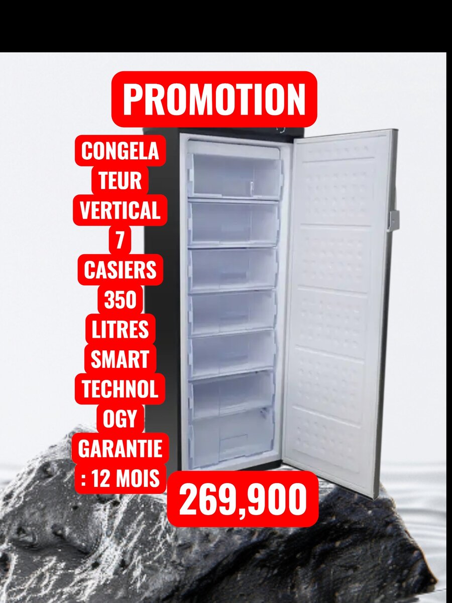 Optimisez votre espace avec ce congélateur vertical de 350 litres, doté de 7 casiers pratiques. Technologie intelligente et garantie de 12 mois pour une conservation optimale de vos aliments. Idéal pour les familles et les restaurants.