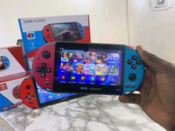 Découvrez la console de jeu portable X12, idéale pour les amateurs de jeux classiques et modernes. Avec son grand écran et ses nombreuses fonctionnalités, elle offre une expérience de jeu immersive. Parfaite pour jouer en déplacement ou à la maison.