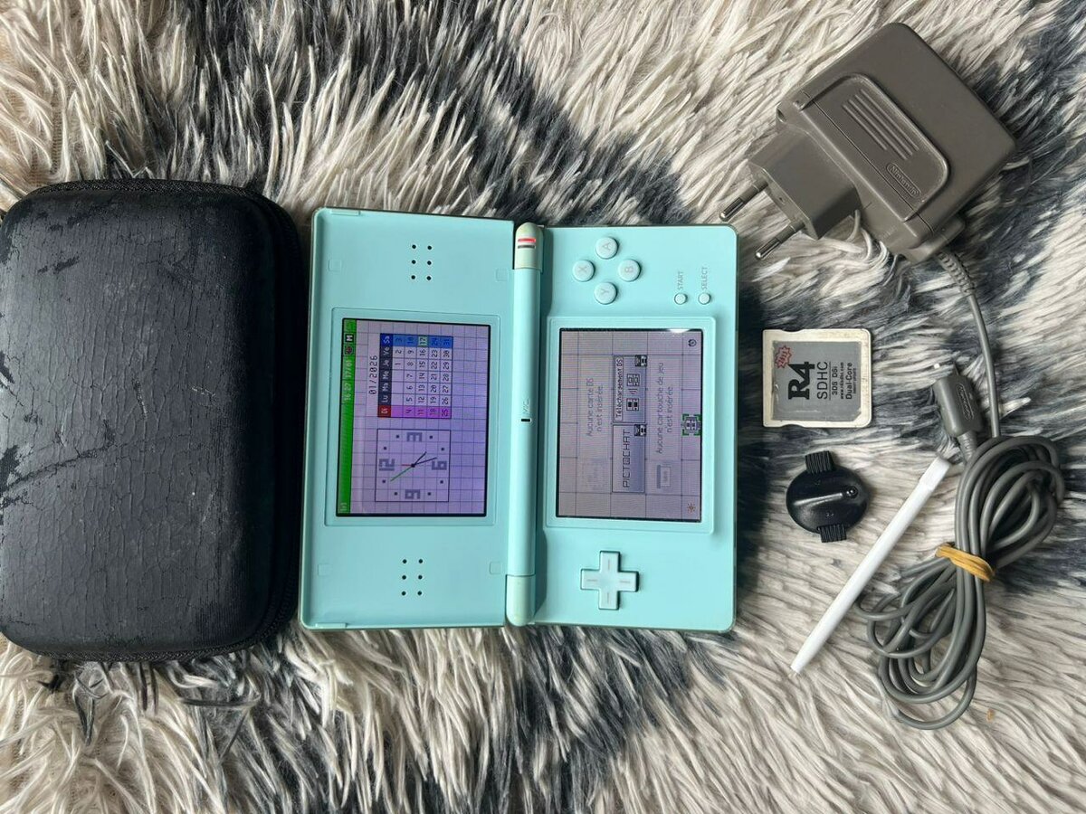 Découvrez le Nintendo DS Lite - console de jeux portative emblématique. Comprend un chargeur, stylet, carte R4 et étui de protection.