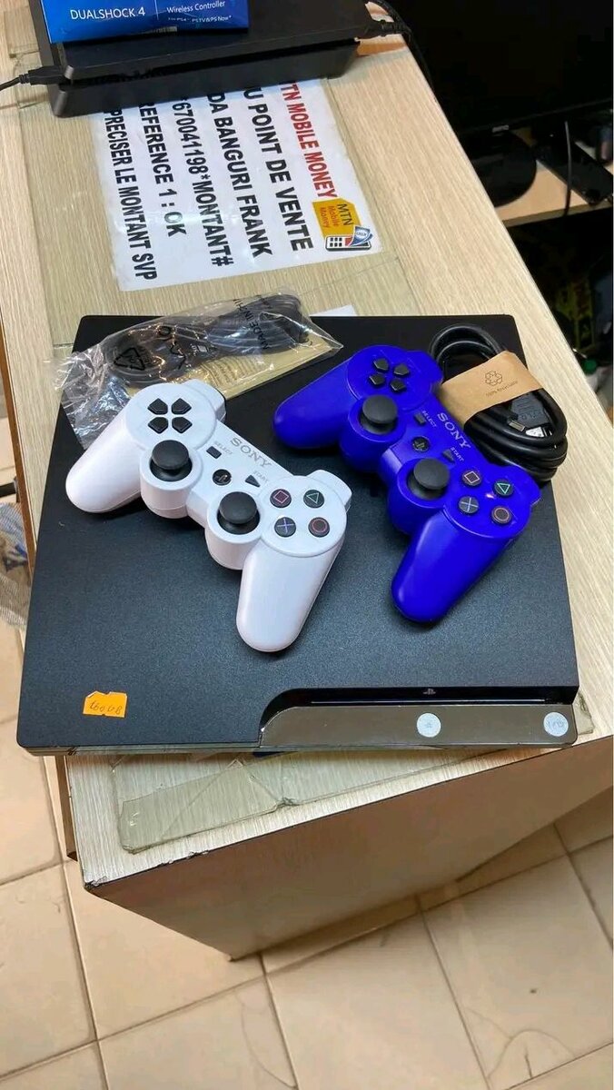 Console PS4 Slim 500Go avec 2 manettes sans fil. Stockage généreux pour vos jeux.