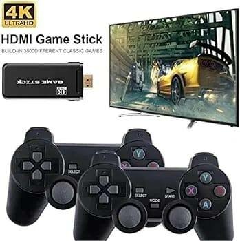 Console sans fil Console de jeu rétro 4K Ultra HD Plug & Play Système de jeu vidéo TV sans fil | Plus de 50 000 jeux | 10 émulateurs | Configuration à deux joueurs | Clé de jeu sans fil 2,4 G + Clé USB 64GB