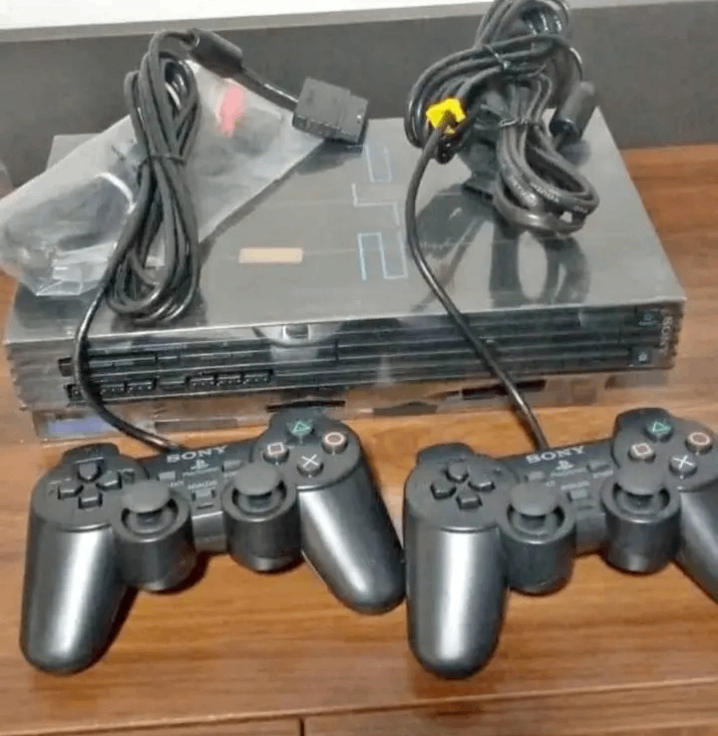 Console de jeu Sony PlayStation 2 avec 2 manettes et câbles inclus. Parfait pour les amateurs de jeux rétro, une expérience de jeu immersive.