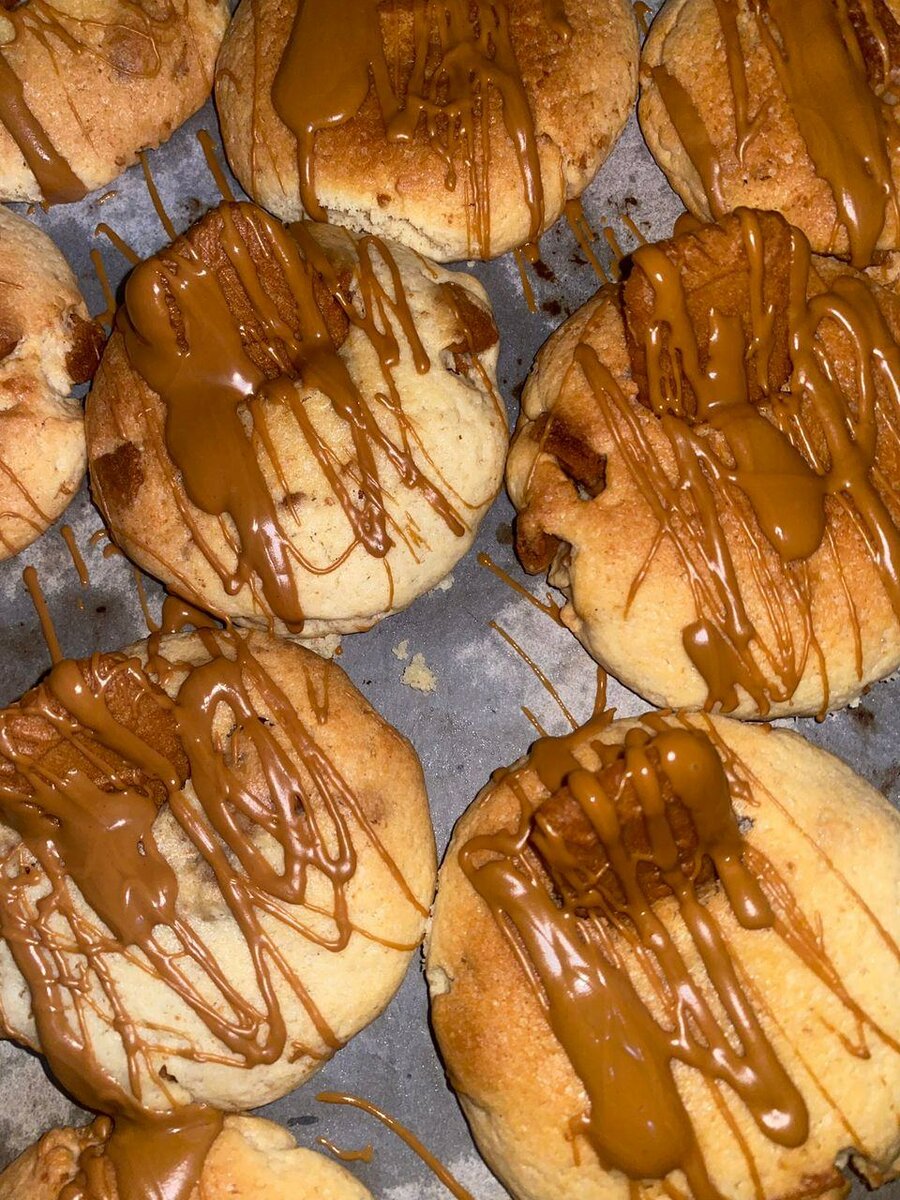Les cookies spéculoos sont moelleux avec un cœur fondant de pâte à tartiner spéculoos, parsemés déclats de biscuits pour une touche croustillante et encore plus de gourmandise.
