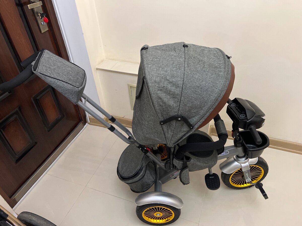 Детская велосипедная коляска от 6 месяцев до 5 лет. Детали всех элементов позволяют ребенку легко кататься на трехколесном велосипеде.