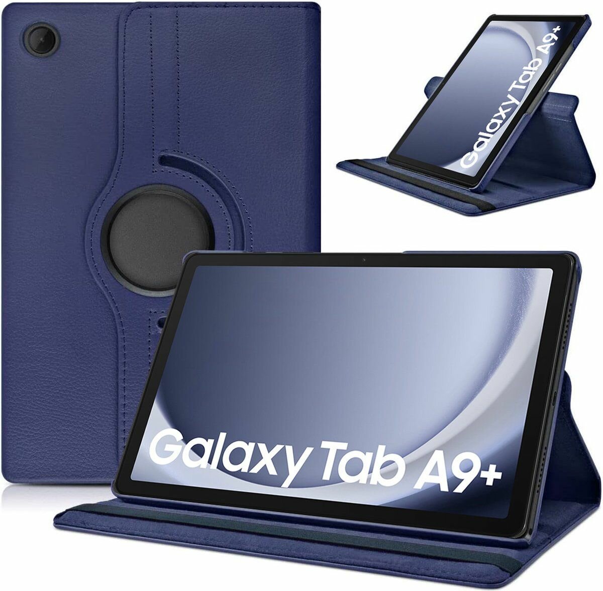 Coque de protection rotative à 360° pour Samsung Galaxy Tab A9+. Design élégant en cuir PU bleu, parfait pour un usage professionnel ou quotidien. Fonction support intégré pour un confort de visionnage.
