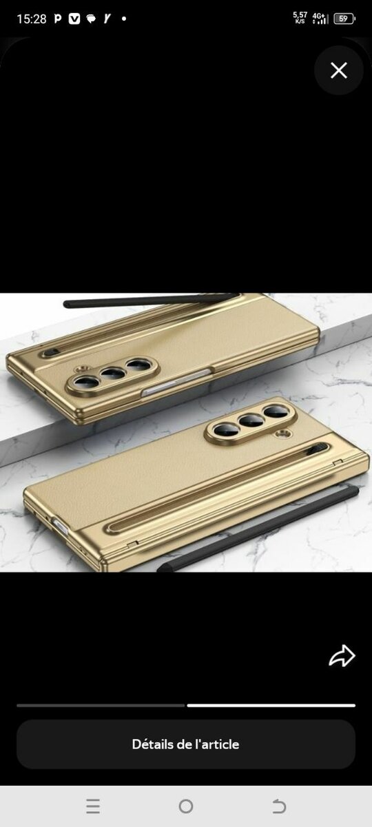 Élégante et robuste, cette coque dorée est conçue pour les smartphones pliables. Elle protège votre appareil tout en ajoutant une touche de luxe. Conçue pour s'adapter parfaitement au format pliable, elle assure une protection optimale contre les chocs et les rayures. Un accessoire idéal pour ceux qui recherchent style et durabilité.