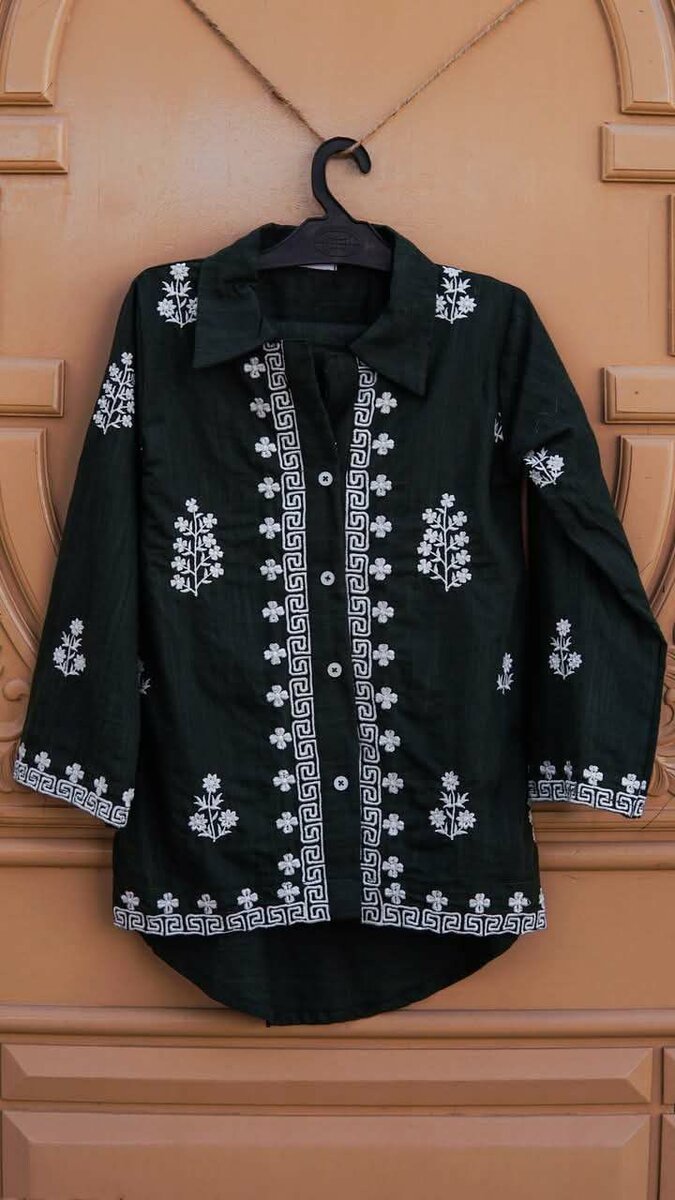 Woman's Stitched 2 Pcs Linen Embroidered Long Length Shirt