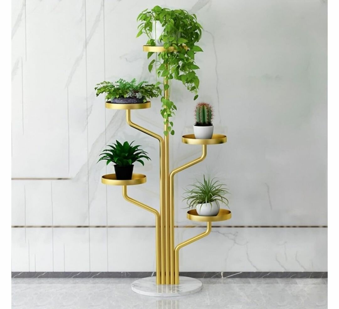 CORNER PLANT STAND LIVING ROOM WROUGHT IRON FLOWER STAND (W22.8 X D15 X H53.9)INCH - GOLD Model Number: ghx4823