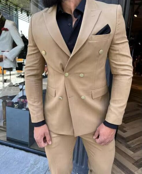 Impressionnez avec ce costume d'affaires élégant pour homme. En marron raffiné, il est idéal pour les réunions et événements formels. Confortable et ajusté à la perfection, ce costume double-boutonnage avec pochette chic et accessoire décoratif est un choix incontournable pour le professionnel moderne.