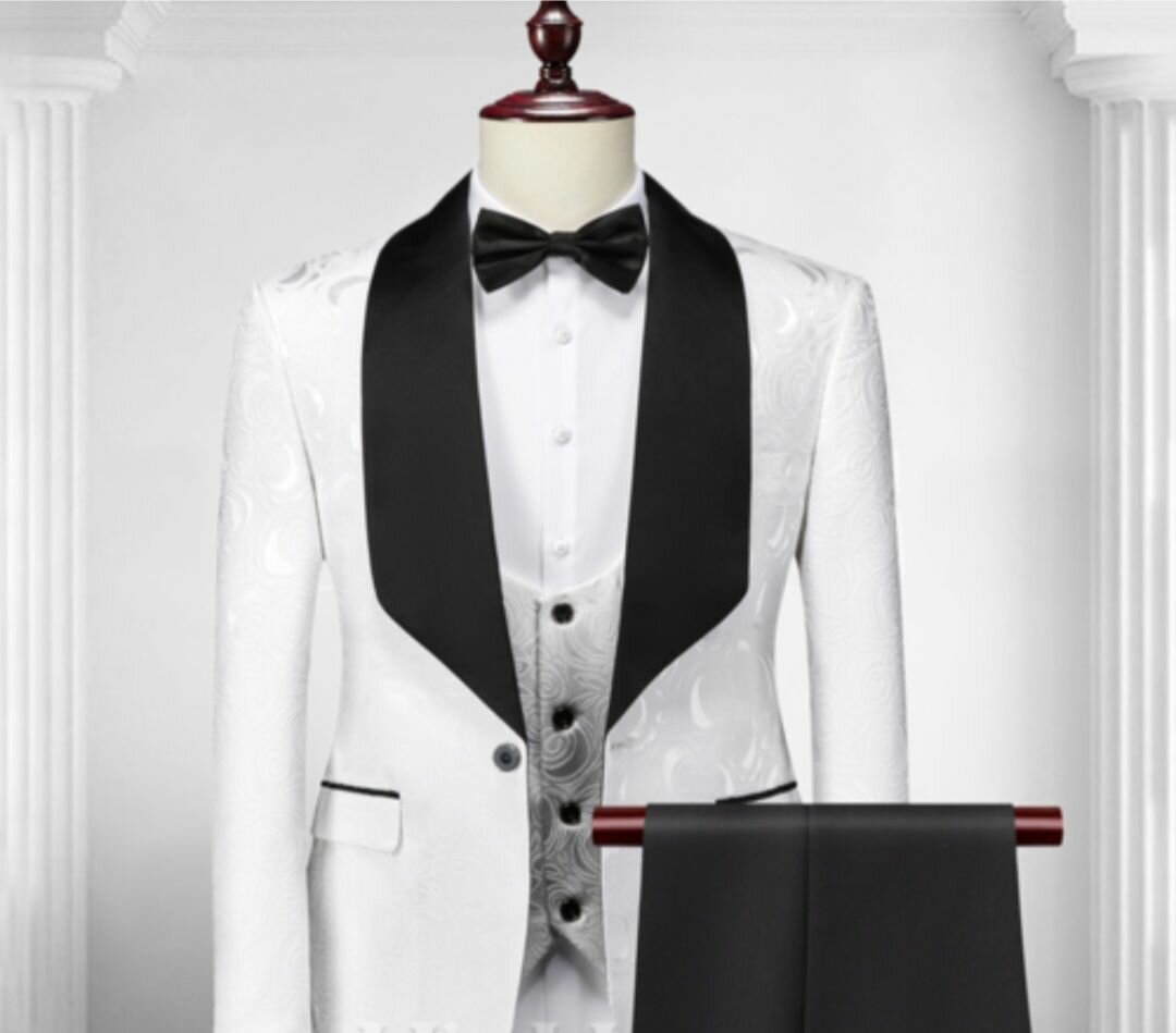 Ce magnifique costume de mariage blanc avec col noir est idéal pour des occasions spéciales. Conçu dans des matériaux de haute qualité, il assure confort et élégance. Parfait pour le marié ou des événements formels.