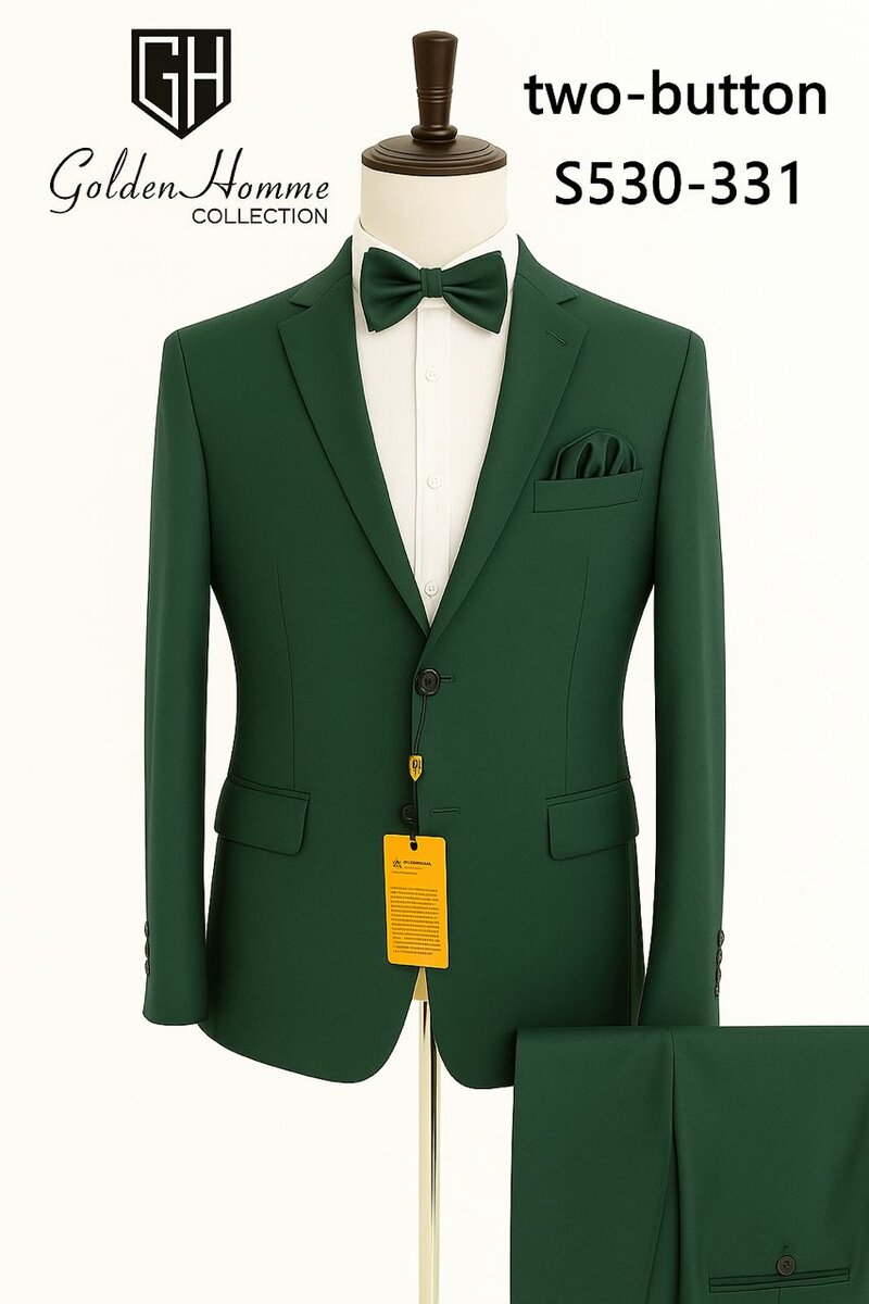 Découvrez ce costume deux-pièces vert forêt de la collection Golden Homme. Idéal pour les occasions formelles, sa coupe ajustée et son design raffiné vous garantissent élégance et confort. Fabriqué à partir de matériaux de haute qualité pour un style durable.