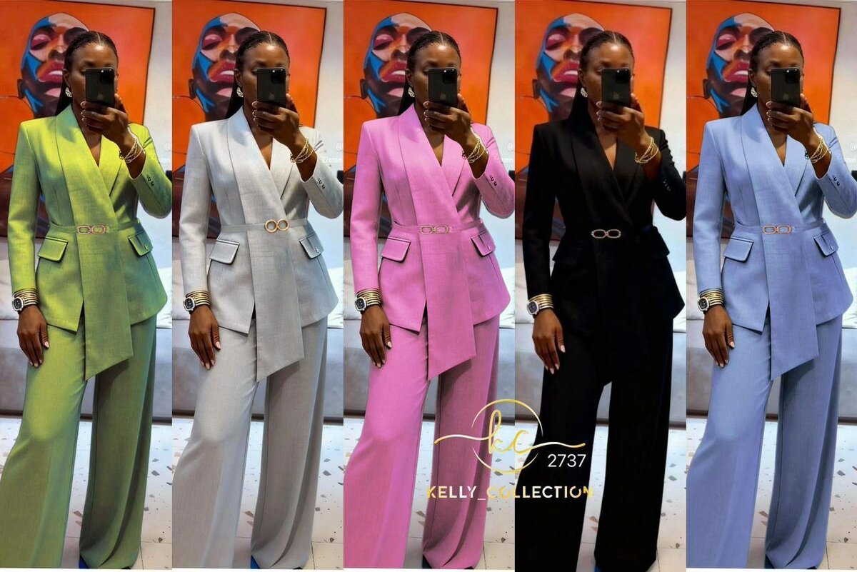 Découvrez notre costume élégant pour femmes, parfait pour un look chic professionnel ou pour des événements spéciaux. Disponible en plusieurs couleurs tendance, ce costume est confectionné à partir de matériaux de qualité pour un confort et une allure impeccable. Idéal pour le bureau ou les soirées.