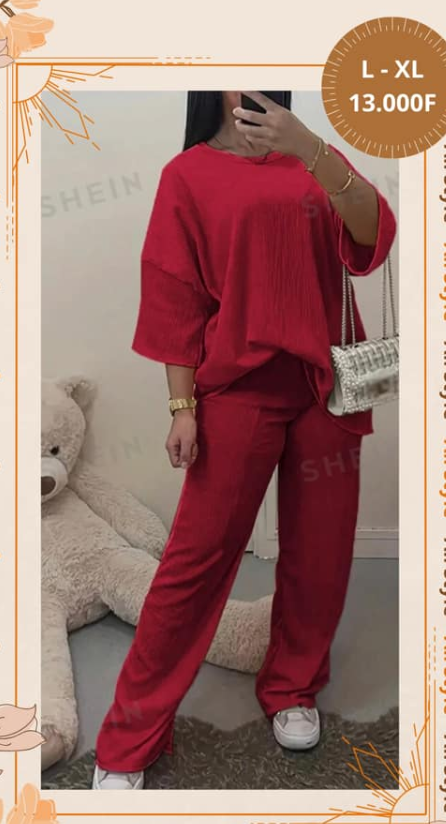 Costume féminin rouge. pantalon et chemisier taille L-XL