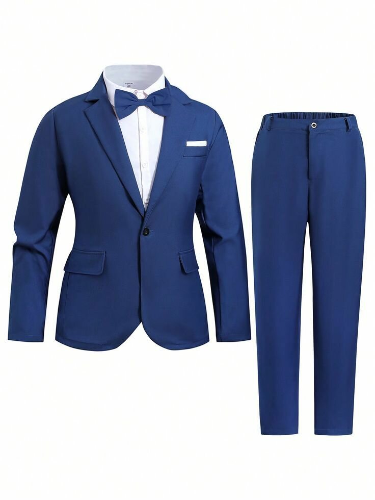 Optez pour ce costume pour garçon alliant style et confort. Idéal pour des occasions spéciales, ce costume bleu est parfait pour ajouter une touche de sophistication à la tenue de votre enfant. Contenu : Veste, gilet et pantalon