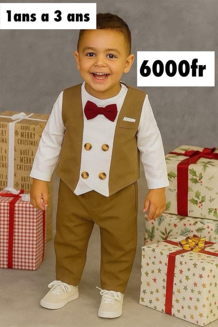 Offrez à votre petit garçon un look chic avec ce costume élégant, parfait pour les occasions spéciales. Fabriqué avec des matériaux confortables, il comprend un gilet et un pantalon assortis avec nœud papillon rouge. Idéal pour les fêtes ou mariages.