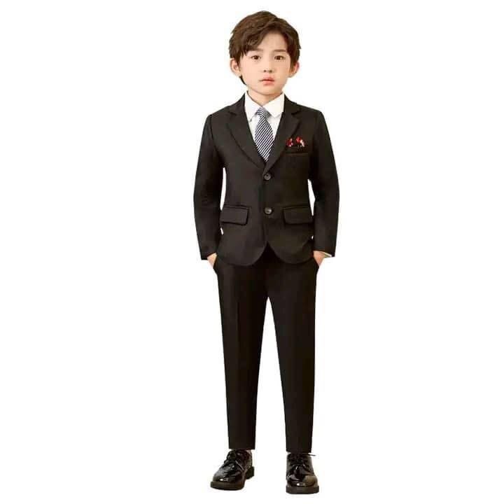 Costume trois pièces pour garçon, parfait pour des occasions spéciales. Conçu pour offrir un look élégant et soigné. Disponible en différentes couleurs et tailles.
