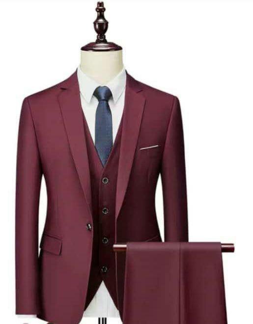 Élégant costume trois pièces bordeaux, idéal pour les événements formels et les occasions spéciales. Comprend une veste ajustée, un gilet chic et un pantalon assorti. Confection soignée avec des matériaux de qualité supérieure, offrant un look sophistiqué et un confort accru. Parfait pour l'homme moderne qui valorise le style et le raffinement.