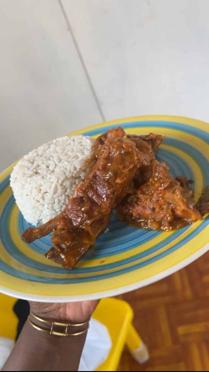*côtelettes de porc* Un plat généreux composé de riz parfumé accompagné de côtelettes de porc , tendres et assaisonnées à la perfection. Un mélange savoureux qui ravira les amateurs de bonne cuisine !