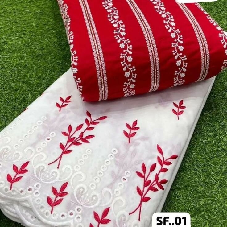 Cotton Embroidery Shirt Cotton Embroidery Duppata, Cotton Plain dyed Trouser
