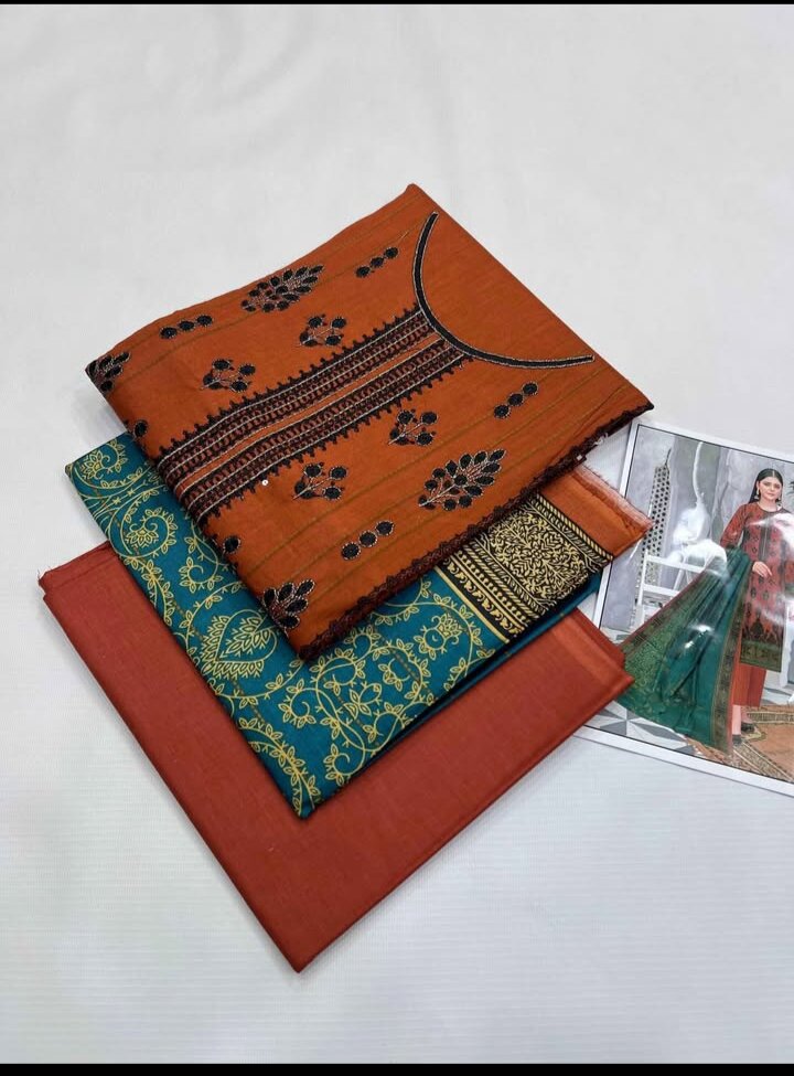 Cotton Emboidered Shirt Cotton Emboidered Dupata Cotton Dyed Plain Trouser