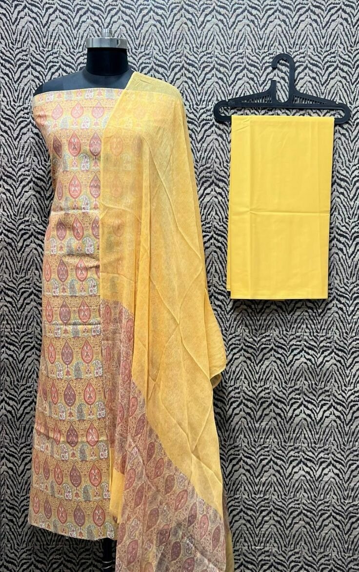 Digital Printed Cotton Shirt Plain Dyed Cotton Trouser Digital Printed Cotton Duppata