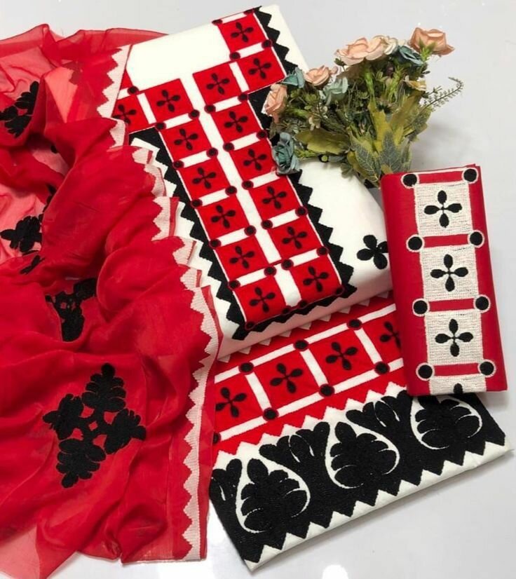 Cotton Embrodered Shirt, Cotton Embroidery Trouser, Cotton Embroidery Duppata