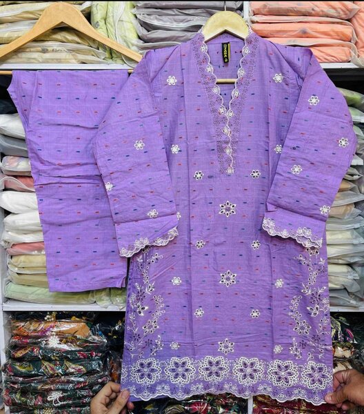 Cotton Embroidered Gala & Printed Shirt, Cotton Digital Printed Trouser, Cotron Embroidered Duppata