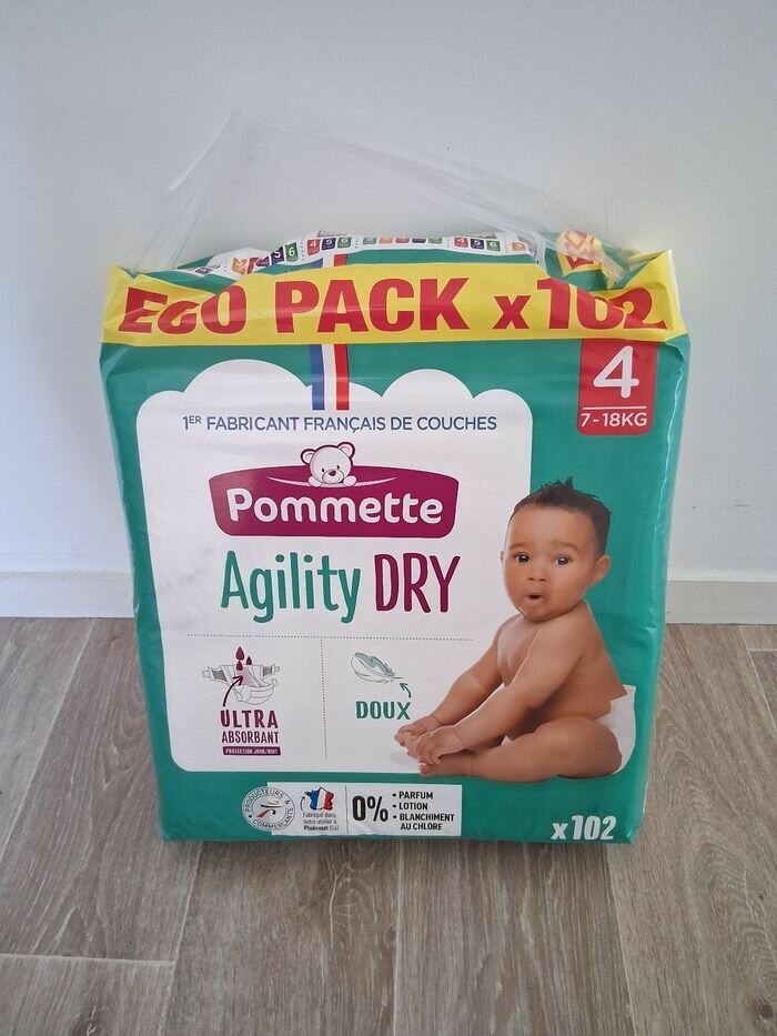 Offrez à votre bébé confort et protection avec les couches Pommette Agility Dry Taille 6. Conçues pour les bébés de 7 à 18 kg, ces couches ultra absorbantes et douces assurent une sensation de bien-être tout au long de la journée. Idéales pour les nuits paisibles et les déplacements. Pack économique de 102 couches.