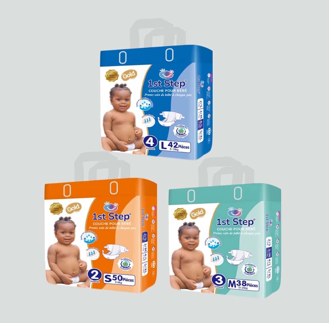 Choisissez les couches 1st Step pour le confort et la protection de votre bébé. Absorption supérieure, douceur, et hypoallergéniques - idéales pour la peau sensible.
