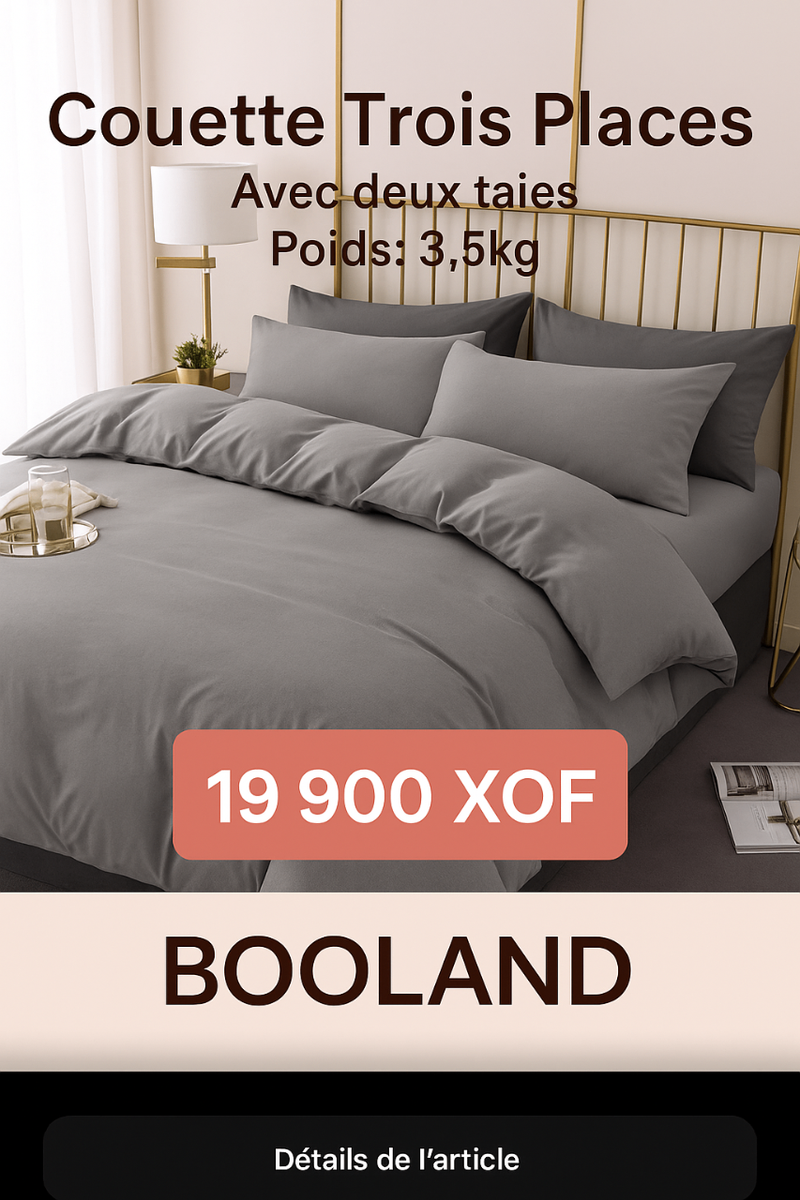 Une couette coursue avec soins et avec des matériaux de qualité. Avec un poids de 3" 5 Kg nous produits sont de qualités impeccable.