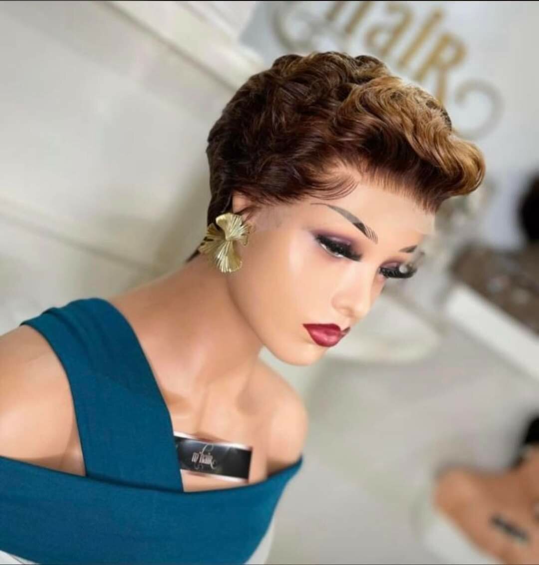 Perruque bouclée courte en dentelle