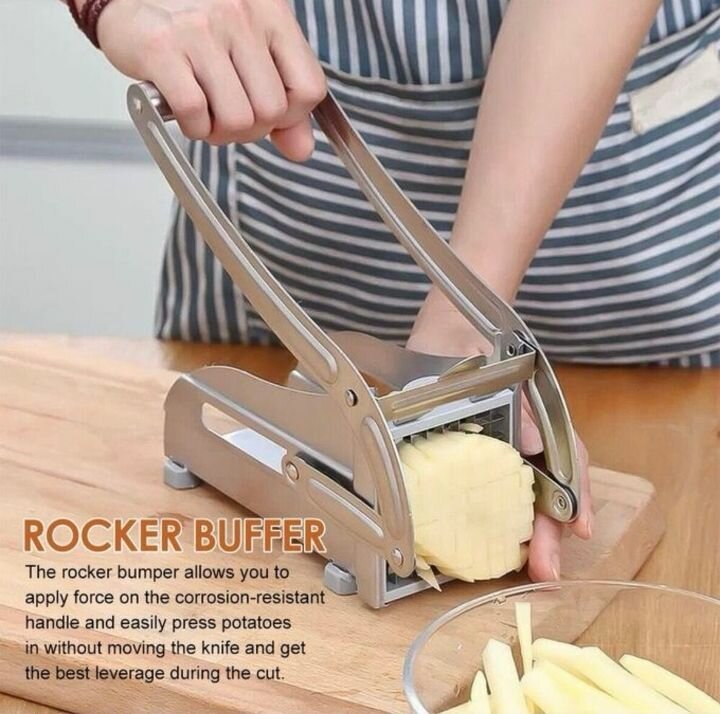 Optimisez votre préparation culinaire avec ce coupe-frites en acier inoxydable. Facile à utiliser, il vous permet de couper des pommes de terre en un geste sans effort. Idéal pour les amateurs de cuisine maison, son design robuste et sa poignée ergonomique garantissent une coupe rapide et précise. Parfait pour un usage domestique ou professionnel.