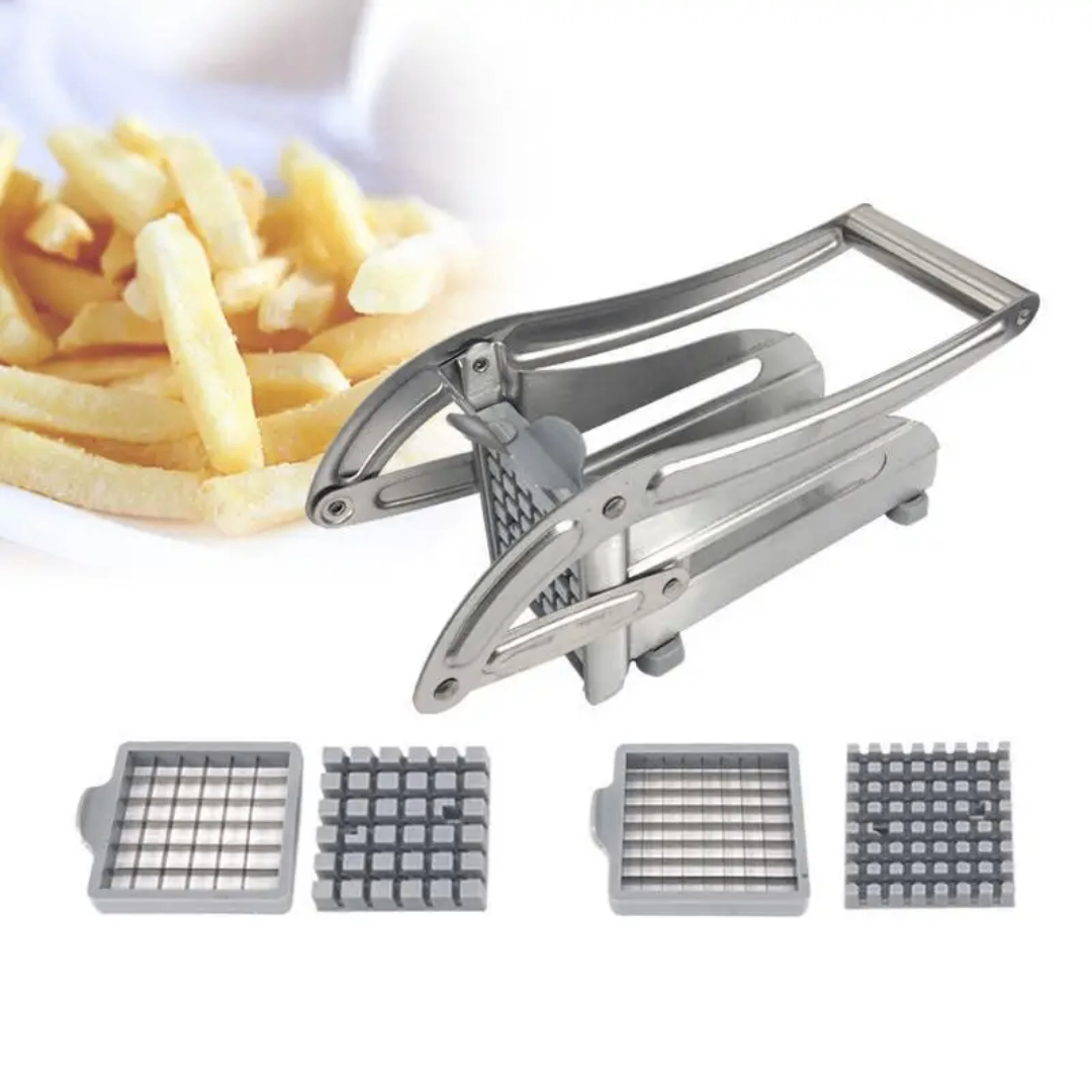 Coupe-frites en acier inoxydable, solide et facile à utiliser.