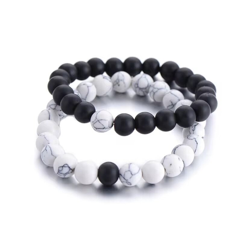 2 Pcs/Set Couples Distance Bracelet Classique Pierre Naturelle Blanc et Noir Bracelets de Perles pour Hommes Femmes