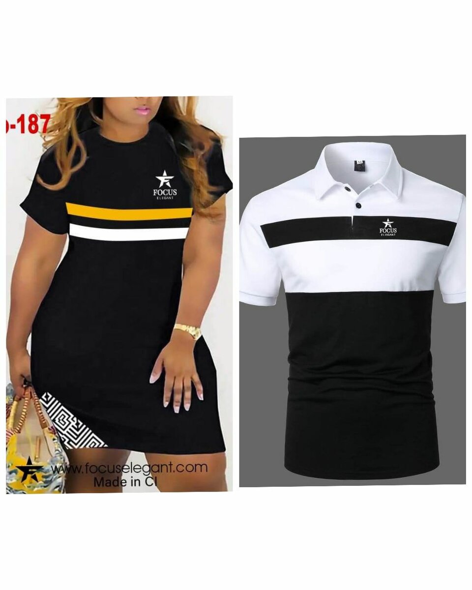 Style in sync with this elegant couple's polo and dress set by Focus.