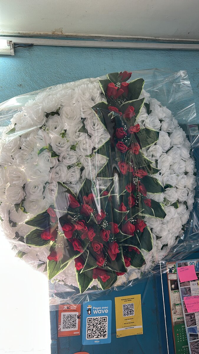 Cette élégante couronne funéraire, décorée de roses blanches et rouges en soie, est un hommage durable à vos proches. Parfait pour des cérémonies dignes et sereines, elle apporte un message de paix et de souvenir éternel.