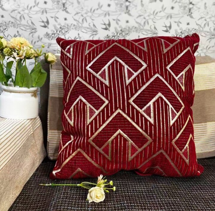 Accentuez votre intérieur avec ce coussin décoratif rouge richement orné. Parfait pour le salon ou la chambre, il ajoute une touche de luxe et de confort. Idéal pour rehausser vos meubles avec style.