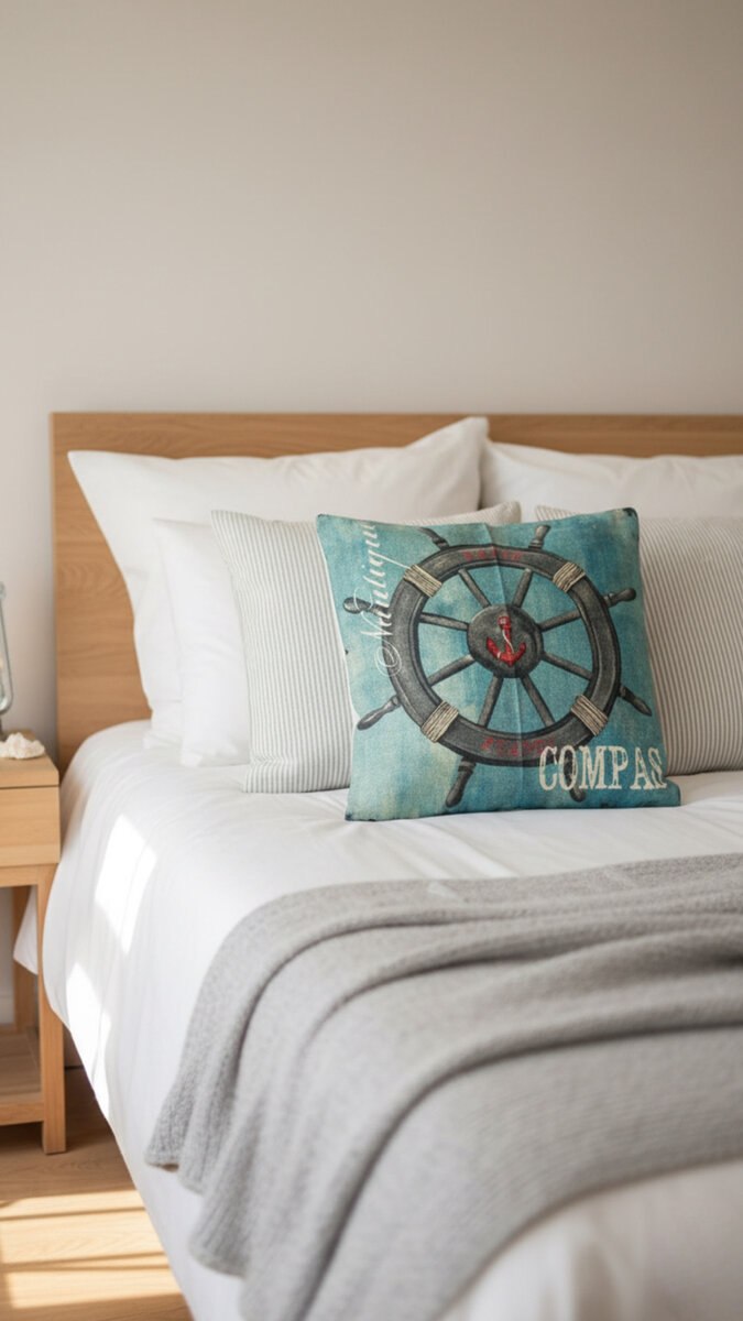Ajoutez une touche maritime à votre intérieur avec ce coussin nautique élégant. Parfait pour le salon ou la chambre, il apporte une ambiance marine apaisante avec son motif de boussole. Confortable et stylé, ce coussin est idéal pour ceux qui aiment la mer et le design nautique.