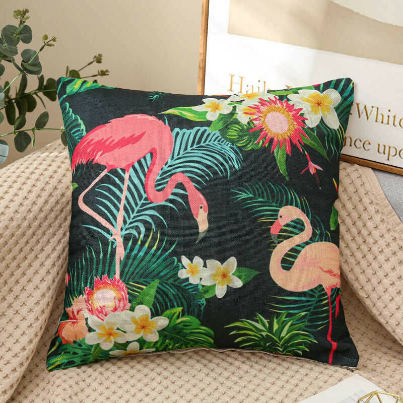 Apportez une touche exotique à votre intérieur avec ce coussin décoratif 45x45 cm. Motif flamants roses et fleurs tropicales, idéal pour le salon ou la chambre. Confection de qualité en tissu doux et résistant.