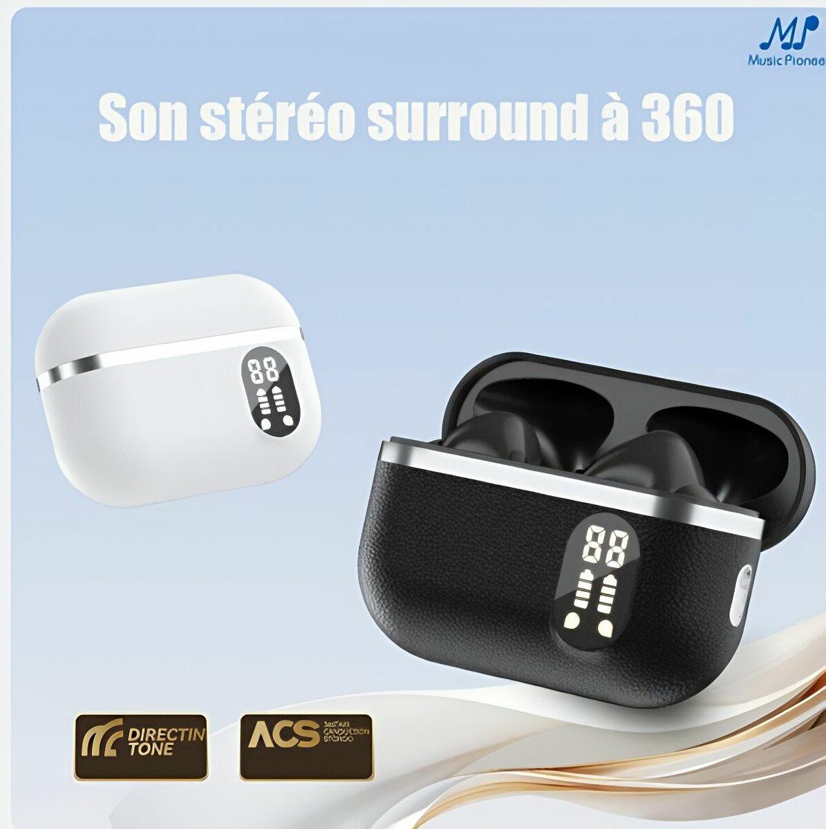 Découvrez la liberté avec nos écouteurs Bluetooth sans fil Music Pioneer. Avec un son cristallin, une autonomie prolongée et un affichage LED élégant, ils sont parfaits pour les déplacements ou les entraînements.