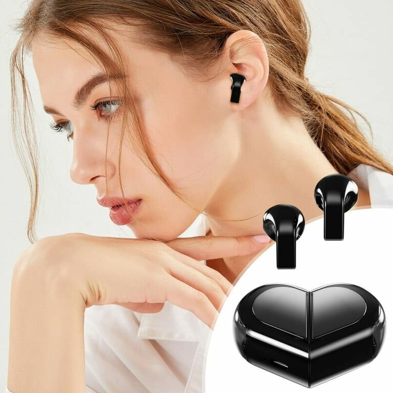 Écouteurs intra-auriculaires sans fil URIZONS en forme de cœur TWS avec micro, pour couples amoureux, pour la Saint-Valentin, pour le sport et les voyages, avec câble de charge