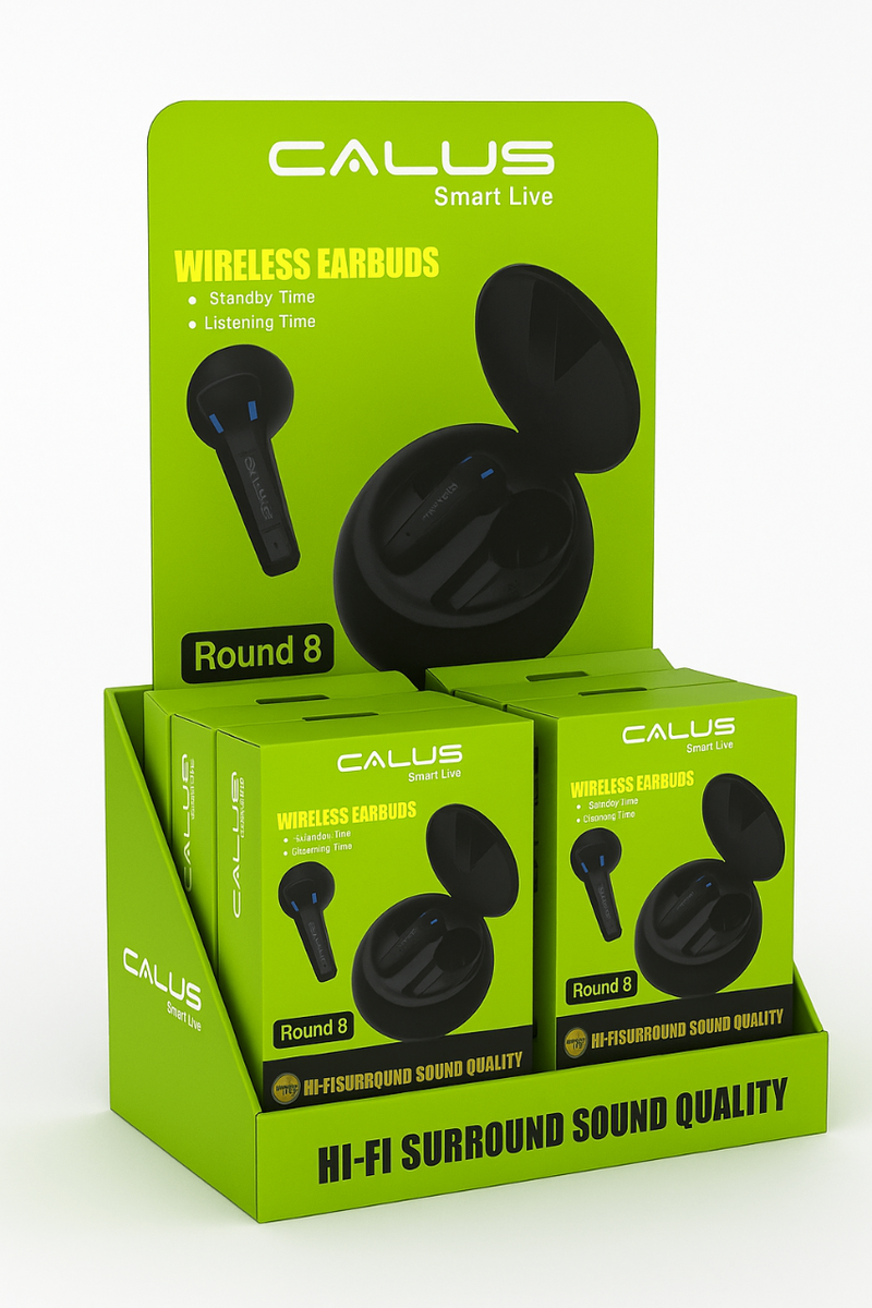 Découvrez les écouteurs sans fil CALUS - Round 8, offrant une qualité sonore Hi-Fi exceptionnelle. Profitez d'une autonomie de longue durée et d'un confort parfait pour toutes vos activités. Idéal pour écouter de la musique ou passer des appels en toute liberté. Design ergonomique et moderne, avec une technologie de réduction de bruit pour une expérience immersive.