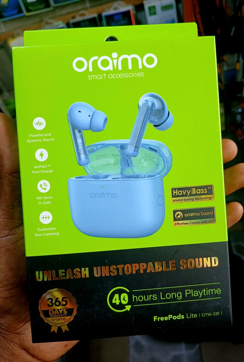 Profitez d'une qualité sonore exceptionnelle avec les écouteurs sans fil Oraimo. Jusqu'à 40 heures d'autonomie, technologie HavyBass pour des basses puissantes, et un design ergonomique pour un confort optimal. Idéal pour la musique et les appels en déplacement!