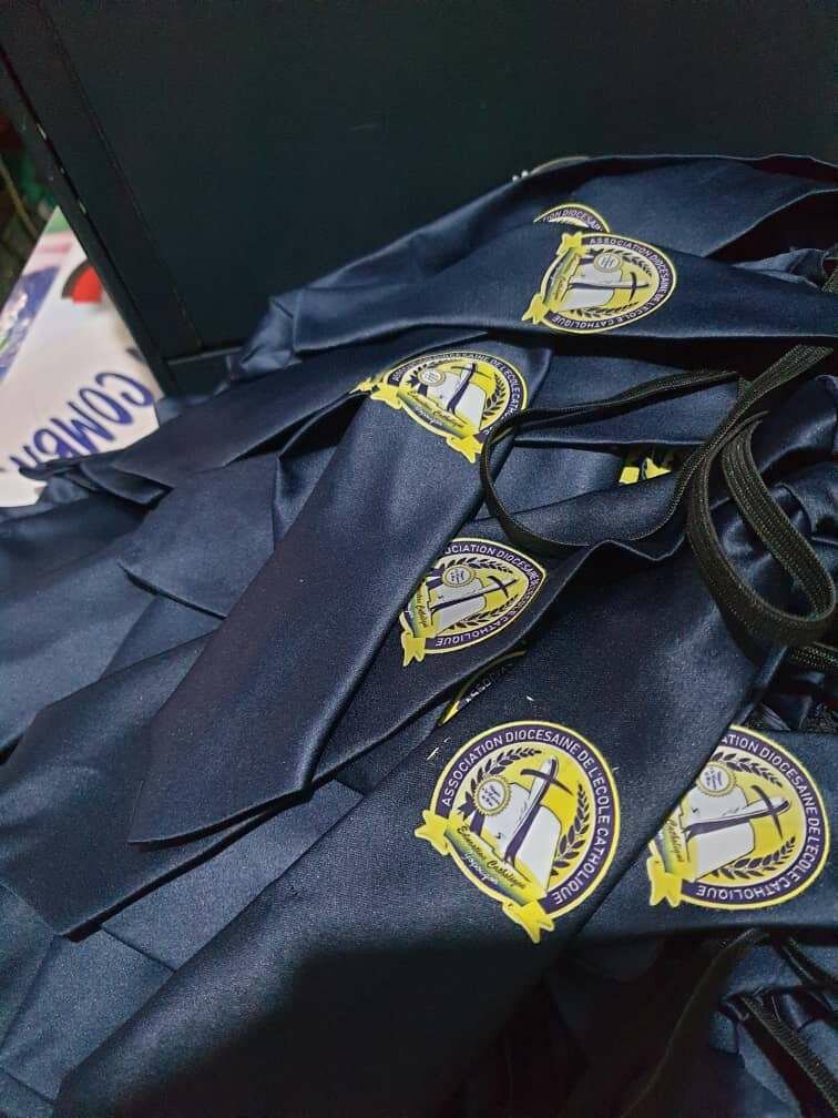 Ajoutez une touche d'élégance académique avec ces cravates noires faites sur mesure pour les uniformes scolaires. Durable et au design pratique, elles sont idéales pour une utilisation quotidienne. Ce choix parfait pour les établissements éducatifs assure une apparence soignée et professionnelle pour tous les étudiants.