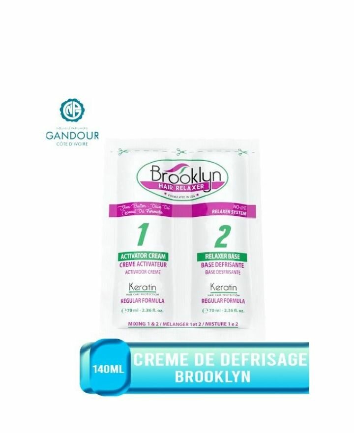 Formulé sans soude et à base de beurre de karité, huile de coco et huile dolive, le défrisant Brooklyn défrise vos cheveux en douceur tout en leur apportant souplesse & brillance. Se défriser les cheveux na jamais été aussi efficace & rapide quavec le défrisant Brooklyn.