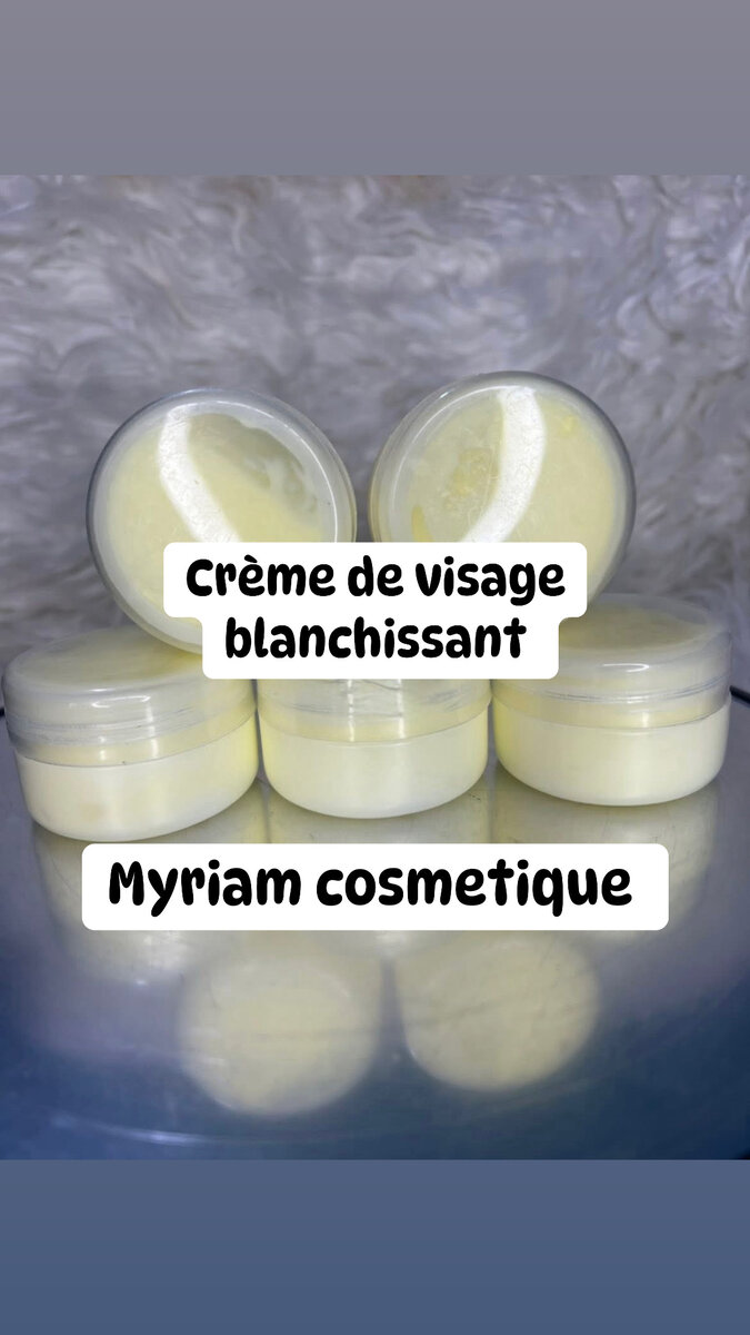 Découvrez la crème de visage blanchissante Myriam Cosmetique – idéale pour un teint lumineux et uniforme. Formulée pour hydrater et éclaircir la peau, elle est parfaite pour un usage quotidien. Sublimez votre beauté naturelle!