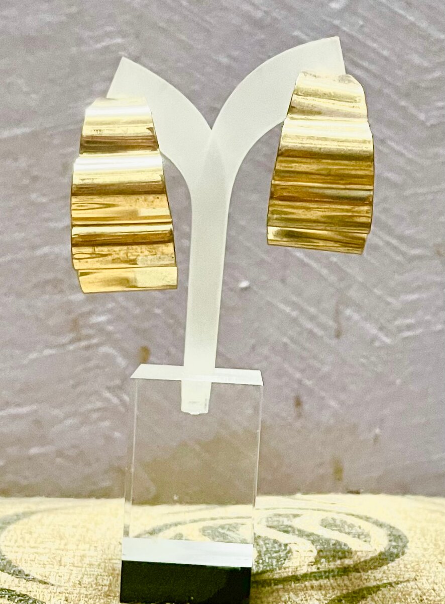 Découvrez ces créoles dorées élégantes, idéales pour sublimer vos tenues de soirée. Leur design ondulé ajoute une touche de sophistication et de modernité. Parfaites pour un look glamour et chic.