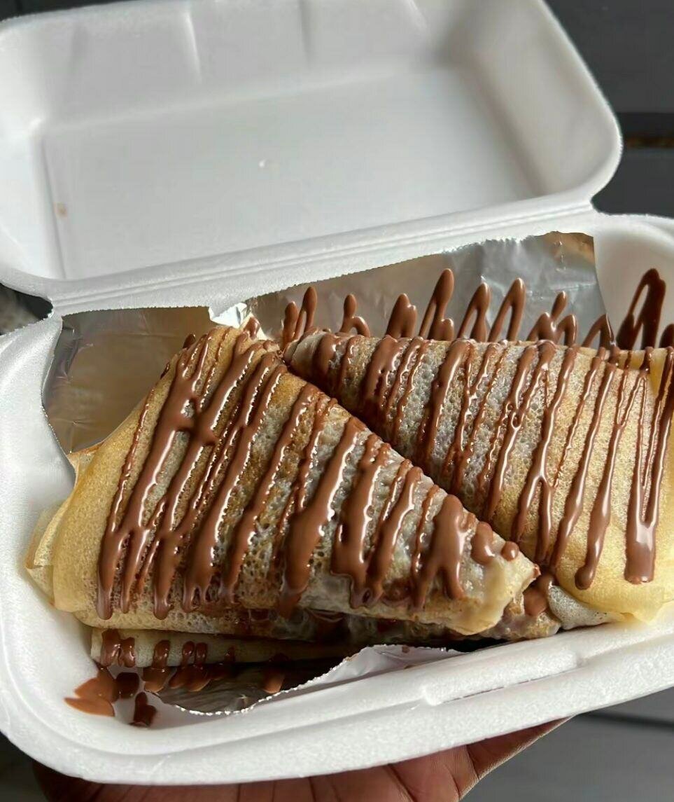 Dégustez nos crêpes au chocolat, savamment préparées et généreusement nappées de sauce au chocolat crémeuse, pour une expérience sucrée irrésistible. Parfaites pour toutes vos envies gourmandes.